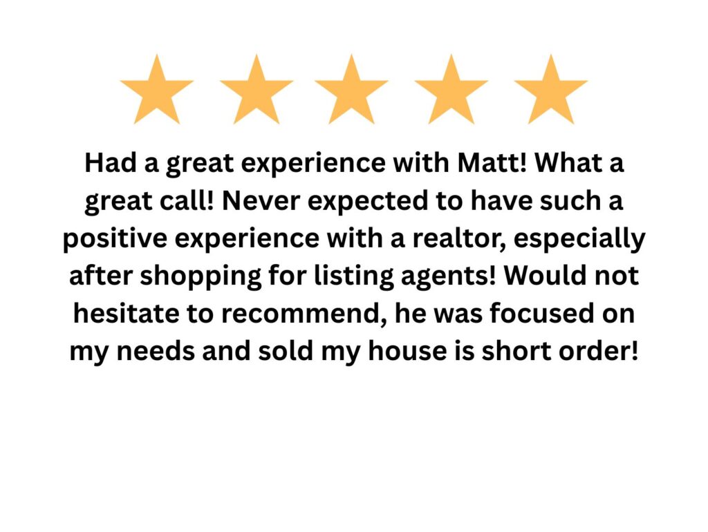“Had a great experience with Matt! What a great call! Never expected to have such a positive experience with a realtor, especially after shopping for listing agents! Would not hesitate to recommend — he was focused on my needs and sold my house in short order!”